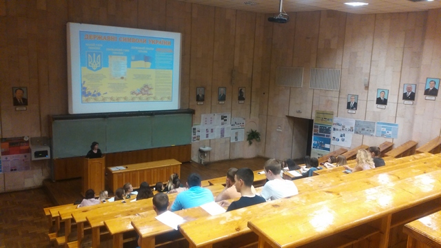 Державна символіка України формувалася не одне сторіччя. В її основі лежать традиції, культура та історія нашої держави. Що ж належить до державної символіки і що вона означає? Звідки і коли вперше з’явився тризуб в історії України? Який вірш є Національним гімном України і на яку музику він покладений? На всі ці запитання ми отримали відповіді під час проведеної зустрічі.