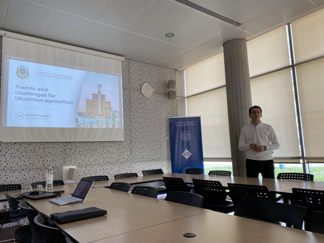 Під час семінару за участі викладачів та студентів Загребського Університету Максим Клименко представив надзвичайно інформативну презентацію стосовно викликів в сільському господарстві України, які виникли внаслідок агресії рф. Розпочавши з загальної інформації про Україну, Максим Клименко зробив акцент на важливості сільського господарства України для внутрішнього розвитку та для світу, а потім перейшов до втрат, які стали наслідком розпочатої широкомасштабної війни росії проти нашої Батьківщини. Хорватських колег зацікавила інформація щодо частки аграрних холдингів і малого та середнього бізнесу у загальному виробництві сільськогосподарської продукції. Дискусія, яка зав’язалася після презентації була досить тривалою та відзначалася певною емоційністю. Учасники семінару довго не розходилися, а потім подякували доповідачу та обмінялися контактами.