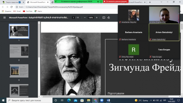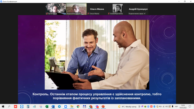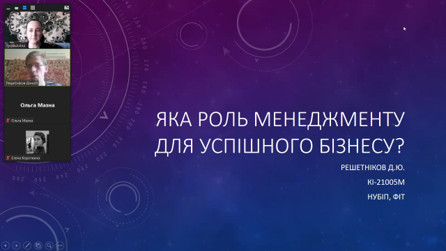 На третій парі доцент кафедри менеджменту ім. проф. Й. С. Завадського Аліна Троян провела практичне заняття з вибіркової дисципліни «Управління бізнесом» для здобувачів другого (магістерського) рівня освіти першого року навчання різних спеціальностей. Варто зазначити, що студенти були підготовлені до семінарського заняття (запланованого на 28 лютого 2022 р.) і представили презентаційний матеріал з обраної теми.
