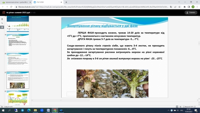 Метою відкритої лекції було ознайомити студентів з перспективами вирощування ріпаку озимого як у світі, так і в Україні, особливостями його росту та розвитку, елементами технології вирощування. У лекції особливу увагу було приділено умовам перезимівлі рослин ріпаку озимого, його загартуванню та вегетації впродовж осіннього періоду розвитку з огляду на складні та нетипові умови зимового періоду, які спостерігаються в розрізі останніх років. Особливо зацікавило студентів та викликало жваве обговорення порівняння умов необхідних для загартування рослин ріпаку озимого з озимими зерновими злаковими культурами, аналіз погодних умов минулої зими та вплив їх на перезимівлю культури.