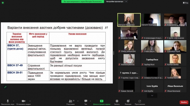 7 квітня в дистанційному форматі відбулась відкрита лекція старшого викладача кафедри рослинництва кандидата сільськогосподарських наук Пилипенко Вікторії Сергіївни з дисципліни «Рослинництво» для студентів 2 курсу ОС «Бакалавр» зі спеціальності 201 «Агрономія» на тему: «Технологія вирощування пшениці озимої».