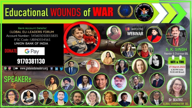 Вебінар був присвячений темі «Educational wounds of war» - наслідки війни в освіті. Від імені засновника та голови Global Edu Leaders Forum С.К. Сінгха було запрошено колег з України - доктора економічних наук, професора кафедри менеджменту імені професора Й.С. Завадського Резнік Надію Петрівну та студентку 2-го курсу ФАМ Олександру Каминіну, щоб почути з перших вуст інформацію про ситуацію в Україні та про переживання її громадян. Вебінар Humanitaria, метою якого був збір коштів на допомогу українським переселенцям із війни, зібрав науковців з єдиною позицією про підтримку України. Також своїми думками та пропозиціями поділилися доктор Рубен Гарсія з Перу, професор Марія Алісія Мальдонадо з Аргентини, доктор Чаї Чінг Тан з Тайланду та інші освітяни з різних країн. Також Надією Резнік було запропоновано запровадження безкоштовних онлайн курсів англійською мовою на різноманітні теми від провідних професорів з різних країн. Ця ідея була сприйнята з цікавістю та активно підтримана всіма учасниками конференції.