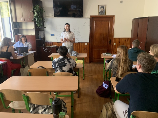 Вона познайомила школярів 10-11 класів з нашим закладом вищої освіти, спеціальностями, за якими навчаються студенти в закладі, унікальними можливостями для самореалізації та професійного зростання, запросила на День відкритих дверей. Учні уважно слухали, ставили питання та обіцяли завітати до НУБіП України.