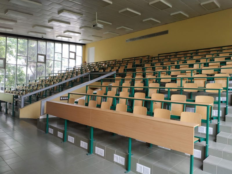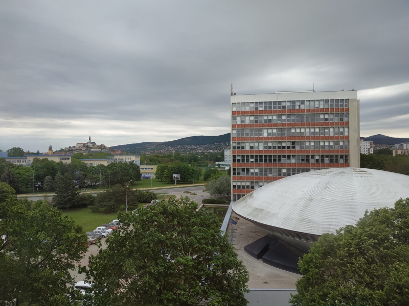 Показав пан доцент мені і лекційні уадиторії і навчальні класи. Чудовий краєвид з вікна лекційної аудиторії відкриває всю красу Нітранського замку та його прилеглих територій.