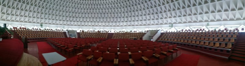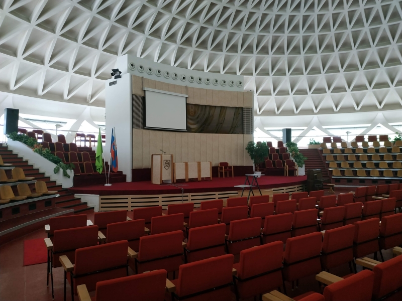 Потім пан Ян Бріндза показав актову залу університету, це саме те, що знаходиться під тарілкою. Пан Ян Бріндза був у Києві і знає, що у нас така ж тарілка знаходится на станції метро «Либіська». Так от, під цією тарілкою, чудова величезна зала під куполом у якій проводяться визначні для університета події та засідання.