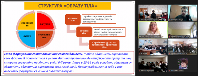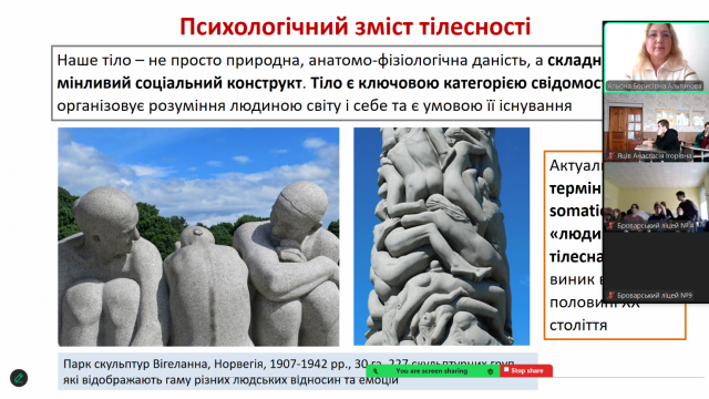Разом із викладачем учні поміркували над такими питаннями: чим саме є для сучасної людини її тіло; як на уявлення про себе і своє тіло впливають індивідуальні особистісні якості, сім’я, суспільство; яким чином дослідження тілесної карти та тілесної схеми впливає на розуміння різних розладів, таких як анорексія, білімія та дисморфічний розлад.
