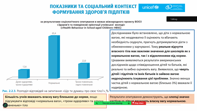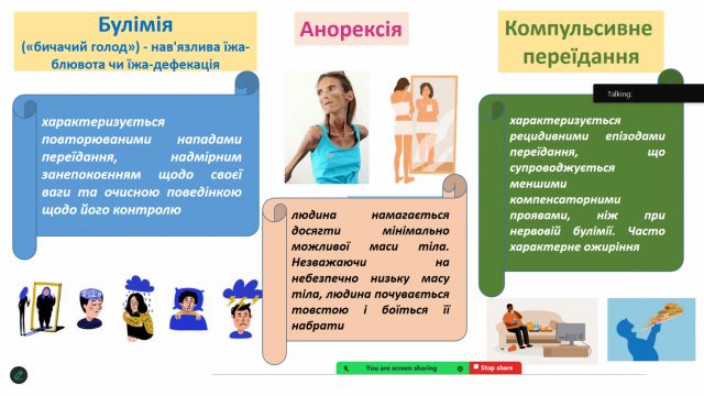 Під час лекції також подискутували про те, чим небезпечна надмірна маса тіла; як побудувати здорові стосунки з тілом і їжею, орієнтуючись на індекс маси тіла та чому, згідно опитування учнівської молоді в межах міжнародного проекту «Здоров’я та поведінкові орієнтації учнівської молоді України» біля 35% учнів незадоволені своїм тілом.