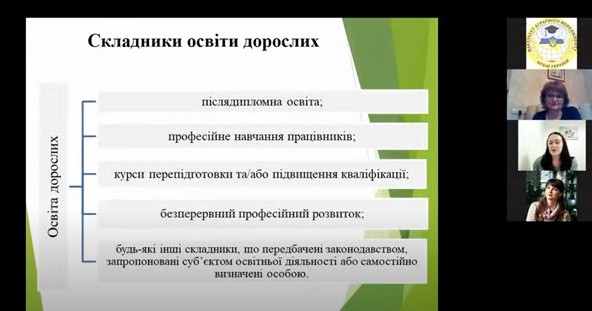 Лектор Троян А.В. надала інформацію про особливості освіти дорослих та методи професійного навчання персоналу на робочому і позаробочим місцем; розкрила суть поняття «кар’єра» та наголосила на необхідності здійснення управління діловою кар’єрою працівника.