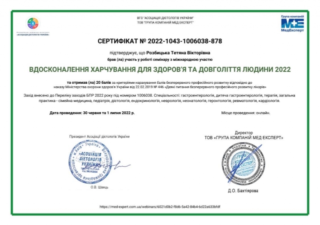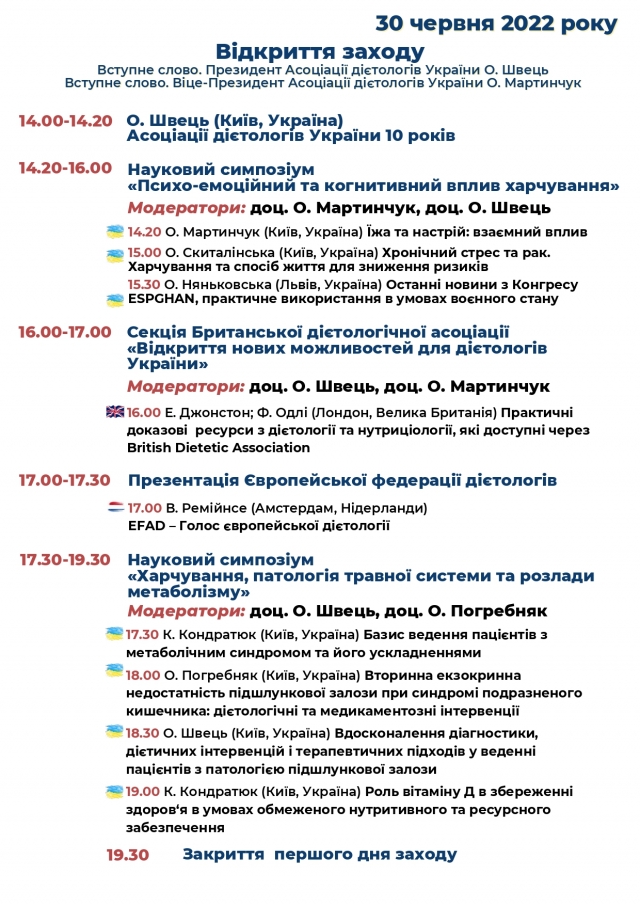- Науково-практична секція «Практична дієтологія в умовах воєнного часу».