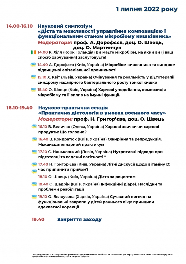 - Науковий симпозіум «Дієта та можливості управління композицією і функціональним станом мікробіому кишківника».