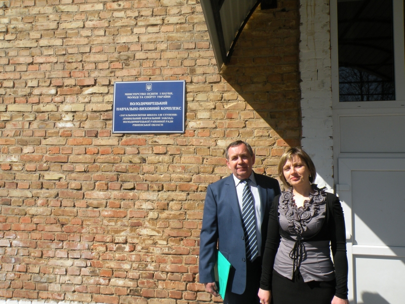 Професор Костюк В.К. поспілкувався з учнями та вчителями ще однієї школи рідного Полісся – Володимирецького навчально-виховного комплексу «Загальноосвітня школа І-ІІІ ступенів – дошкільний навчальний заклад». Інформація про НУБіП зацікавила не тільки учнів, а й багатьох вчителів школи. Наприкінці зустрічі професор Костюк В.К. передав заступнику директора Савчук Тетяні Іванівні буклети та зробив фото на згадку.