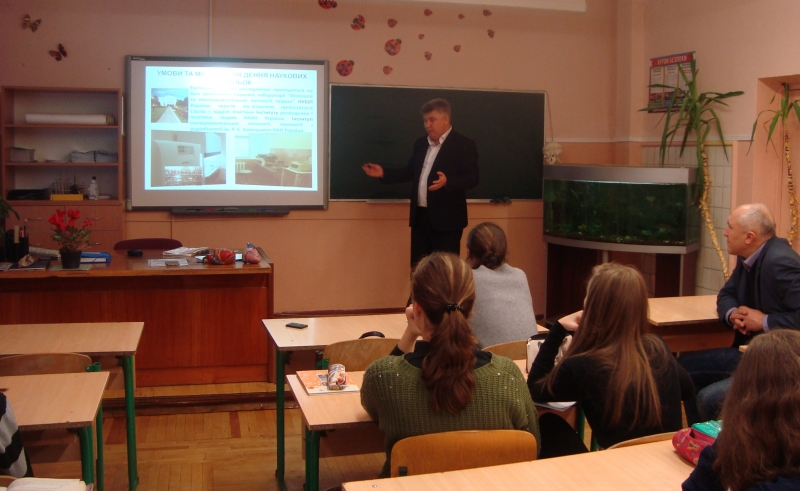 Профорієнтація серед учнів11 класу ЗОШ №186 м.Києва. проф М. Малюк та доц. С. Ткаченко