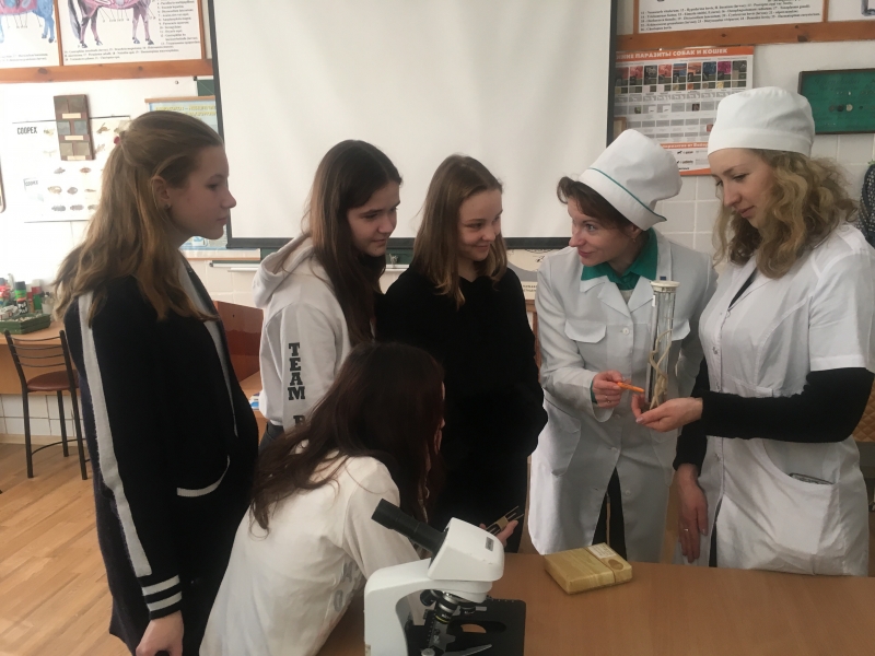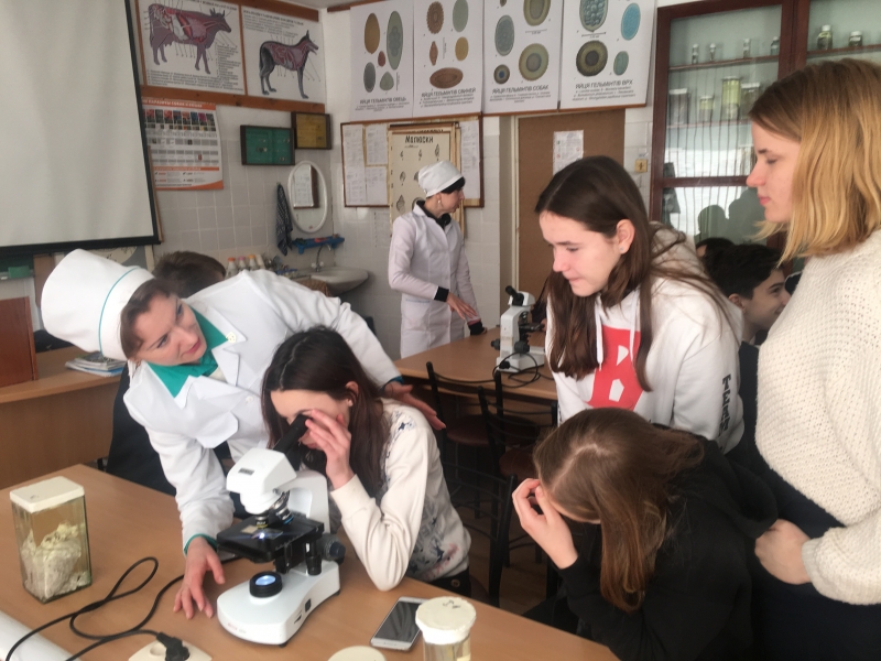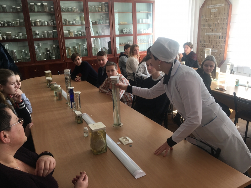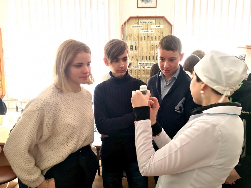 Упродовж заняття, учні з цікавістю розглядали препарати гельмінтів, кліщів та комах. У ході спілкування було з’ясовано, що більшість школярів мають своїх домашніх улюбленців, а саме собак та котів. Тому викладачами кафедри було наголошено, що джерелом паразитарної інвазії для людини, в більшості випадків, можуть бути і домашні тварини.
