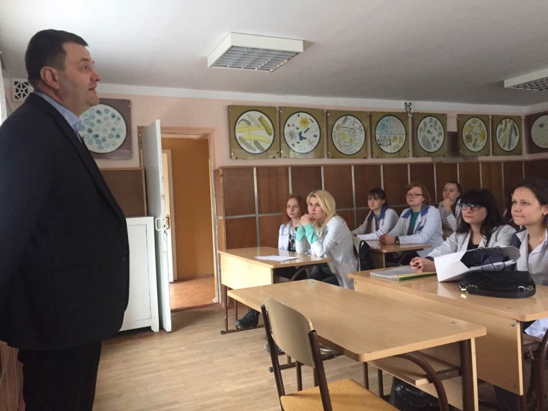 Доцент кафедри хірургії ім. акад. І.О. Поваженка ФВМ, канд. вет. наук Дорощук В.О. провів профорієнтаційну бесіду з майбутніми випускниками відділень: "Лікувальна справа" і "Сестринська справа" "Першого Київського медичного коледжу."