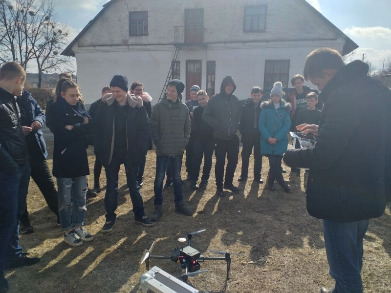 Олександр Чумаченко, доцент кафедри землевпорядного проектування, розповів про особливості навчальної практики з геодезії, яка є невід’ємною складовою частиною процесу підготовки бакалаврів за напрямом «Геодезія та землеустрій», та продемонстрував в дії квадрокоптер, який ефективно використовуються в сфері діяльності геодезії та картографії (проведення аерофотознімання, створення ортофотопланів, створення цифрових моделей місцевості та 3D моделей різних об’єктів, створення топографічних планів, збір даних для інвентаризації земель тощо).