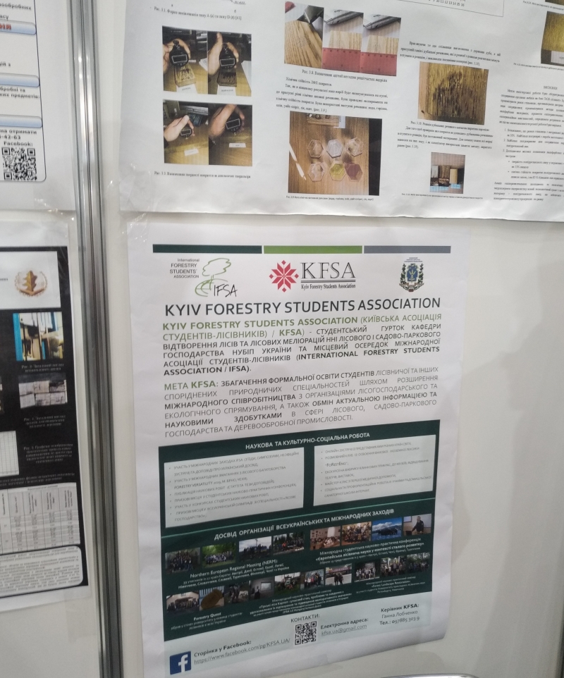 Щороку гуртківці «Kyiv Forestry Students Association» ННІ лісового і садово-паркового господарства у плані роботи на навчальний рік обов’язково включають відвідування Міжнародної виставки технологій для лісового господарства, деревообробної та меблевої промисловості LISDEREVMASH з метою ознайомлення із новинками та сучасним технологічним озброєнням галузі. Та цього року на запрошення організатора виставки Ігоря Мельника та у співпраці з кафедрою технологій та дизайну виробів з деревини студентський гурток «Kyiv Forestry Students Association» презентував свою роботу під час спеціально організованої профорієнтаційної сесії для випускників шкіл та коледжів «Кадри вирішують все: перспективи, реалії», а також доповнив своїм постером стенд університету.