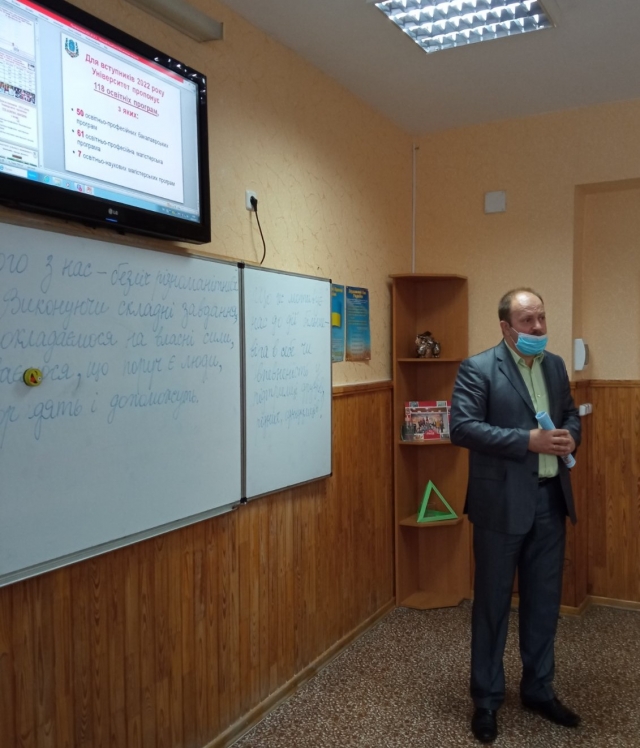 Описуючи переваги навчання в університеті та на факультеті, гості ілюстрували свою розповідь слайдами презентацій, де були представлені і потужна матеріально-технічна база, і дані щодо результатів роботи кваліфікованого професорсько-викладацького складу. Інтерес школярів викликала інформація про майбутнє працевлаштування та приклади успіху кар’єри випускників факультету, серед яких багато ТОП-менеджерів, підприємців, державних діячів тощо.