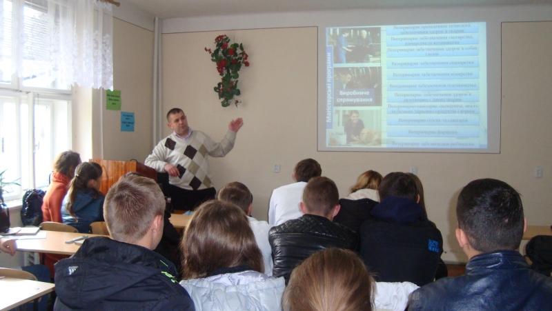 Доцентом кафедри акушерства, гінекології та біотехнології відтворення тварин, заступником декана факультету ветеринарної медицини вже вдруге проводиться профорієнтаційна робота в ВП НУБіП України «Мукачівський аграрний коледж» на відділенні ветеринарної медицини. Минулорічна профорієнтаційна робота дала свої результати і семеро випускників подали документи на факультет ветеринарної медицини, а п’ятеро з них стали студентами нашого факультету. Перешкодою для потенційних вступників з Закарпаття є досить велика відстань до Києва та порівняно близько розташований факультет ветеринарної медицини Львівського національного університету ветеринарної медицини та біотехнологій імені С.З. Ґжицького. Але завданням Сергія Степановича було на своєму прикладі показати майбутнім студентам-землякам, що Київ дає набагато більше можливостей реалізувати себе та здобути гідну освіту.