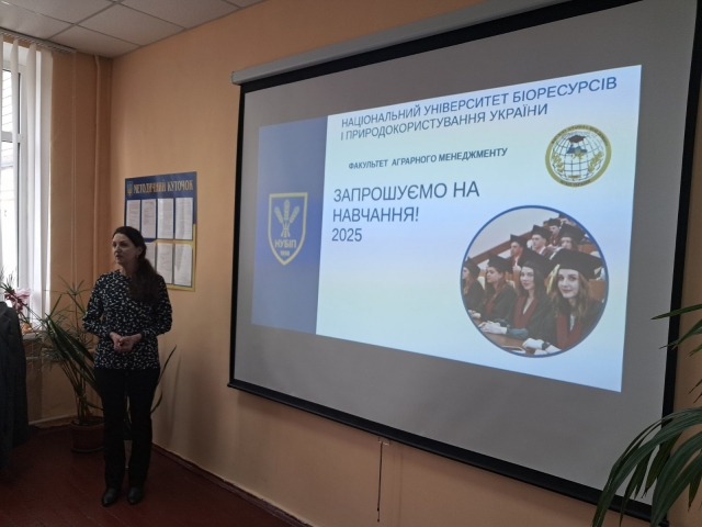 Для студентів, які мають намір під час навчання у закладі вищої освіти отримати військову підготовку, Віталій Вакуленко розповів про кафедру військової підготовки НУБіП України. Змістовно презентував активну співпрацю факультету аграрного менеджменту з провідними аграрними компаніями, роботодавцями, що надає можливість студентам проходити стажування, набувати практичних навичок і отримувати перспективні робочі місця після завершення навчання.