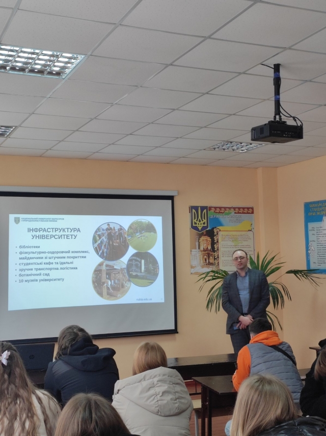 Після вітального слова директора ВСП «Боярський фаховий коледж НУБіП України» Сергія Кропивка, з інформативним презентаціями про НУБіП України перед студентами та викладачами коледжу, виступили фахівці Центру розвитку кар’єри та Приймальної комісії, які акцентували увагу на перевагах навчання в Університеті, перспективах працевлаштування за різними спеціальностями. Майбутні абітурієнти отримали вичерпні відповіді на запитання щодо особливостей вступної кампанії, умови вступу, конкурсний відбір та строки подачі заяв.