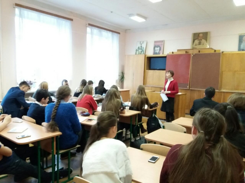 Під час зустрічі з учнями професор Шевченко Л.В. та доцент Михальська В.М. розповіли про переваги навчання у НУБіП України та презентували їм факультет ветеринарної медицини, який є центром ветеринарної освіти і науки України. Учням також була надана інформація про спеціальності, які на факультеті ветеринарної медицини запрошують на навчання в 2018-2019 навчальному році, а саме спеціальність 211 Ветеринарна медицина та 212 Ветеринарна гігієна, санітарія і експертиза.