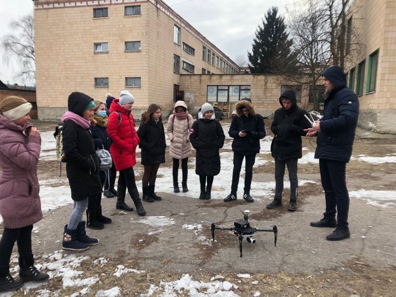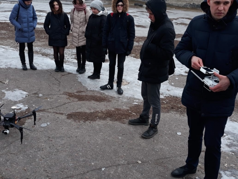 Після чого заступник декана факультету землевпорядкування Олександр Шевченко продемонстрував в дії квадрокоптер, який ефективно використовуються в сфері діяльності геодезії та картографії (проведення аерофотознімання, створення ортофотопланів, створення цифрових моделей місцевості та 3D моделей різних об’єктів, створення топографічних планів, збір даних для інвентаризації земель тощо).
