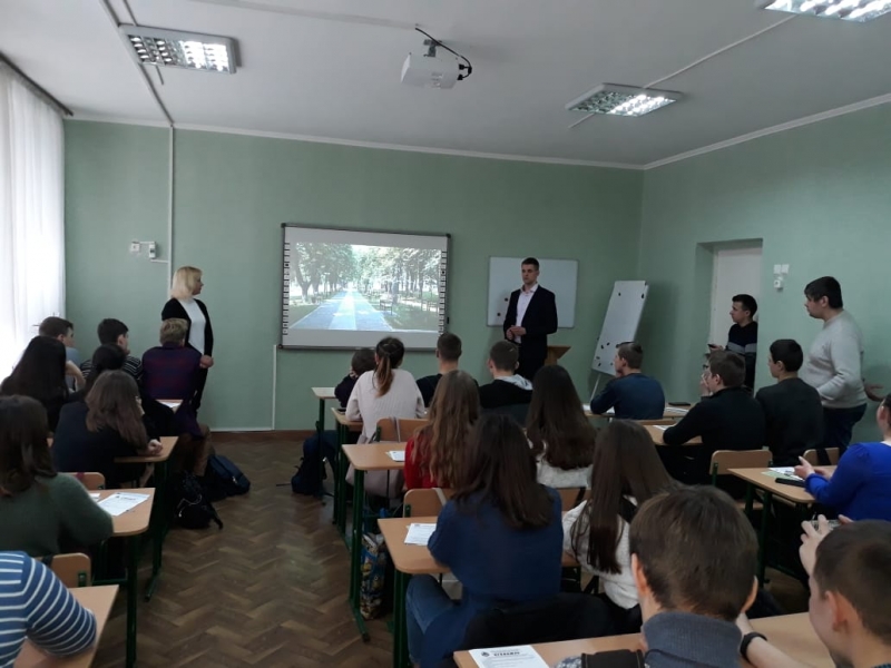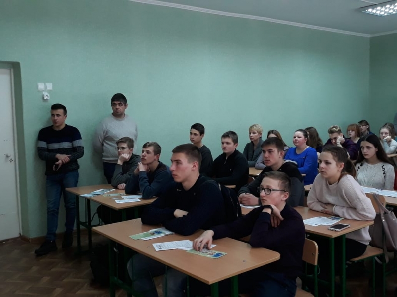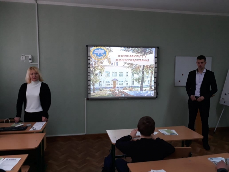 Під час зустрічі учням було продемонстровано відеоролик щодо переваг вступу до НУБіП України: провідного закладу вищої освіти з віковою історією. Також учнів ознайомили з умовами вступу до НУБіП України у 2019 році, широким вибором спеціальностей, участю в олімпіаді на базі університету, переліком необхідних сертифікатів ЗНО, можливостями навчання в англомовних групах та закордонних практиках. Крім того, учням роздано буклети з інформацією про університет та факультет землевпорядкування.