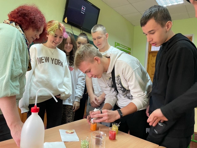 Доцент Марина Ладика провела для учнів ліцею інтерактив, де кожен бажаючий мав змогу за допомогою приладу виміряти наявність та кількість нітратів у фруктах й овочах. Учні зацікавилися такою можливістю та з радістю взяли участь в інтерактиві, отримавши багато позитивних емоцій.