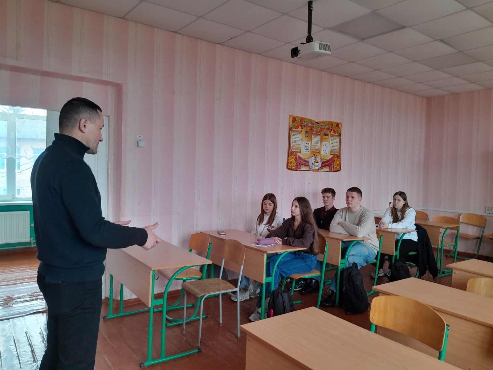 На зустрічі з учнями відбулась презентаційна доповідь про різноплановість спеціальності «Геодезія та землеустрій», а також ознайомлення їх з можливими іноваціями у правилах прийому на 2026 р.
