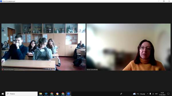 Викладачі кафедри загальної екології, радіобіології та безпеки життєдіяльності на чолі із завідувачем кафедри д.б.н. Клепко А.В., замісником декана факультету захисту рослин, біотехнології та екології, доцентом Бондарь В.І., доцентом Кудрявицькою А.М., старшим викладачем Сальніковою А.В. провели онлайн зустріч із випускниками КЗ КМР «Кагарлицький ліцей №1». Це вже друга зустріч наших викладачів у рамках співпраці між ліцеєм та НУБіП України з приводу профорієнтаційної роботи з учнями старших класів.