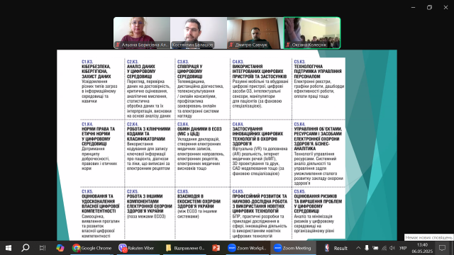 Старший викладач кафедри Костянтин Балашов розповів про цифрові компетенції, які необхідні для ефективної діяльності у сфері охорони здоров'я, акцентувавши увагу аудиторії на вмінні працювати з електронними документами та інформаційними системами охорони здоров'я; знанні основ кібербезпеки; вмінні комунікувати через соціальні мережі, аналізувати та інтерпретувати статистичну інформацію.