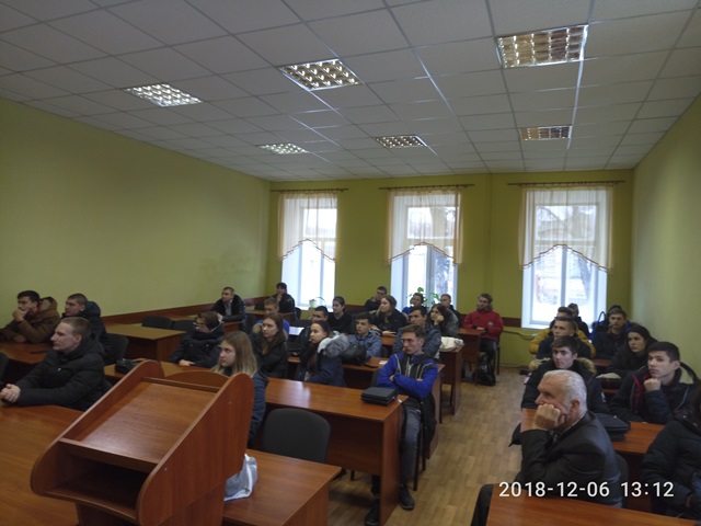 Відповідно до плану профорієнтаційних заходів на кафедрі управління земельними ресурсами, старший викладач, к.е.н. Колісник Г.М. 06.12.2018 відвідав Аграрно-економічний коледж Полтавської державної агарарної академії у м. Полтава де зустрівся із випускниками та студентами 3 курсу спеціальності "Геодезія та землеустрій". На зустрічі майбутні вступники були проінформовані про особливості вступу 2019 року та переваги навчання на факультеті Землевпорядкування НУБіП України.