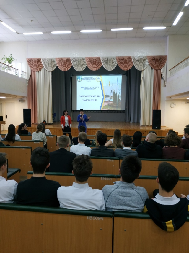 В рамках профорієнтаційної роботи відбулася зустріч представників факультету аграрного менеджменту НУБіП України з учнями старших класів Київського ліцею №144 ім. Григорія Ващенка економічного та історичного профілю.