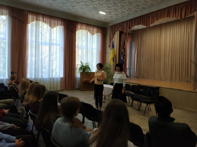 Перед початком зустрічі з учнями Катерина Алексеєва мала можливість поспілкуватися з директором школи № 166 Панько Світланою Олексіївною та узгодити плани щодо наступних профорієнтаційних заходів на базі школи.