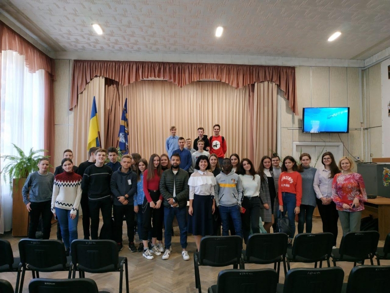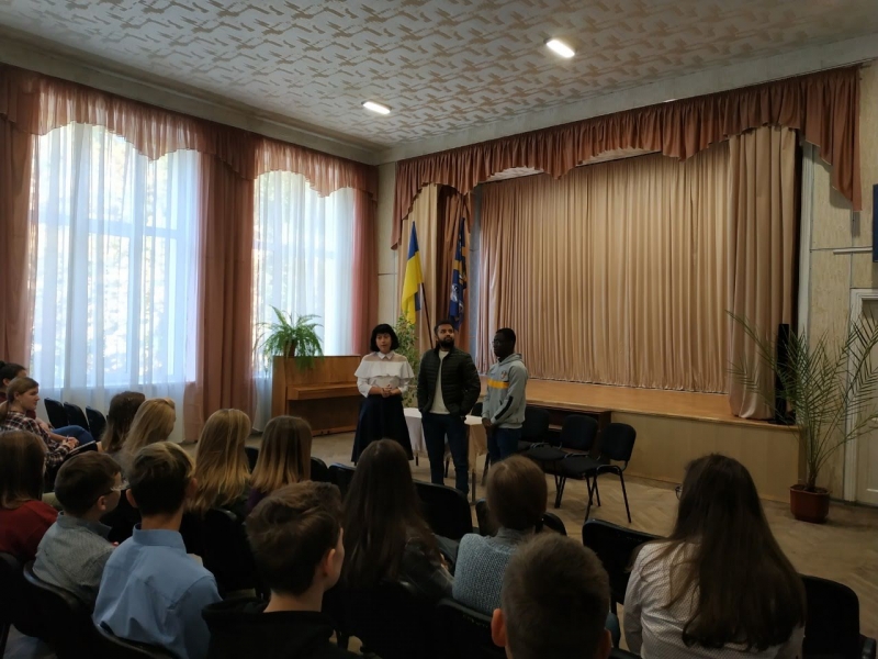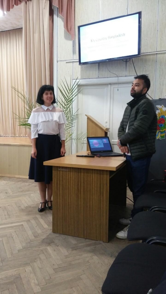 Одразу після виступу магістри Адельф та Імтіаз представили презентації про особливості економіки та менеджменту своїх країн. Катерина Алексеєва виступала модератором та перекладачем під час доповідей студентів: коментувала, задавала навідні питання, перекладала та пояснювала школярам незрозумілі економічні терміни спонукаючи до дискусії. Учні слухали, затамувавши подих та намагалися запам’ятати кожне слово. Особливо цікавим для школярів виявилося відео про економічний розвиток країни Бангладеш англійською мовою.