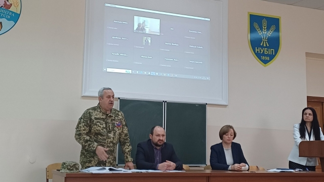 Начальник підрозділу військової мобілізації та взаємодії із Збройними Силами України НУБіП України - Генадій Ржевський ознайомив присутніх із новим законом про мобілізацію та необхідністю оновлення військово-облікових даних для військовозобов’язаних, а також наголосив на відповідальності за не вчасне оновлення військо-облікових даних.