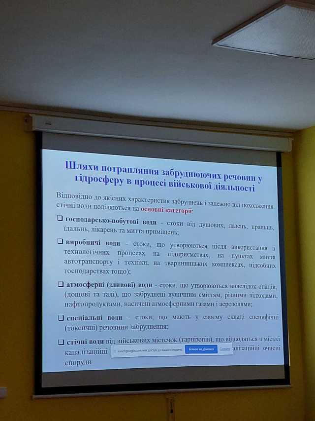 На третій день нам проводили лекцію на тему "Біоіндикація хімічного забруднення агроландшафтів та природних екосистем за допомогою бджіл". На лекції розповідали, як за допомогою бджіл визначають забруднення повітря під час повномасштабної війни та як токсичні речовини впливають на організм бджіл.