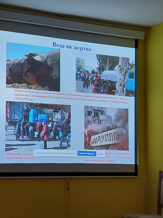 На четвертий день практики була проведена лекція на тему "Збройний конфлікт і стан водних ресурсів у країні". Розповідали про теперішній стан Каховської ГЕС та, як затоплення території вплинуноло на стан навколишнього середовища та на живі організми.