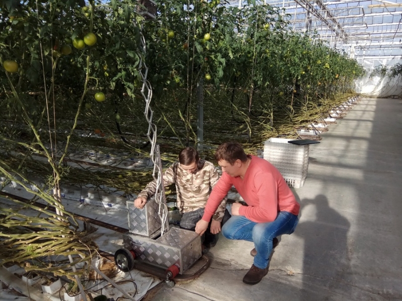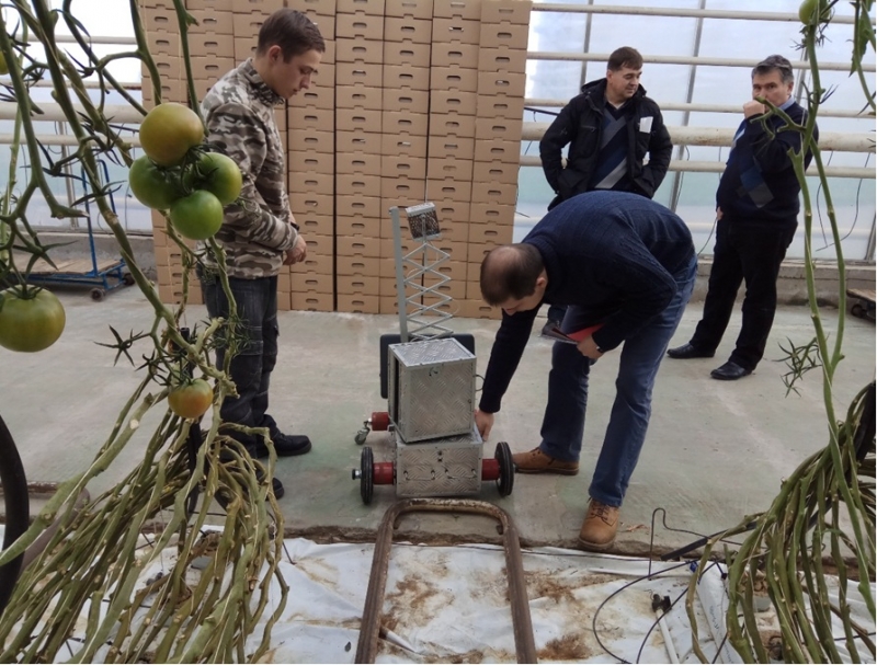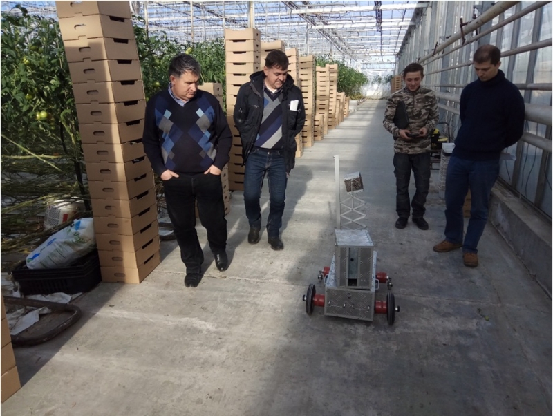 Тривалий час на кафедрі автоматики та робототехнічних систем ім. акад. І.І. Мартиненка проводяться дослідження щодо створення інтелектуального роботизованого електротехнічного комплексу (далі Робот) для оцінки станів томатів та параметрів атмосфери у спорудах закритого ґрунту. І ось нарешті науковцями кафедри були проведені успішні випробування розробки в ПАТ «Комбінат «Тепличний» Київської обл. Броварського р-н.При цьому виробничники високо оцінили її можливості та потребу для тепличних комбінатів.