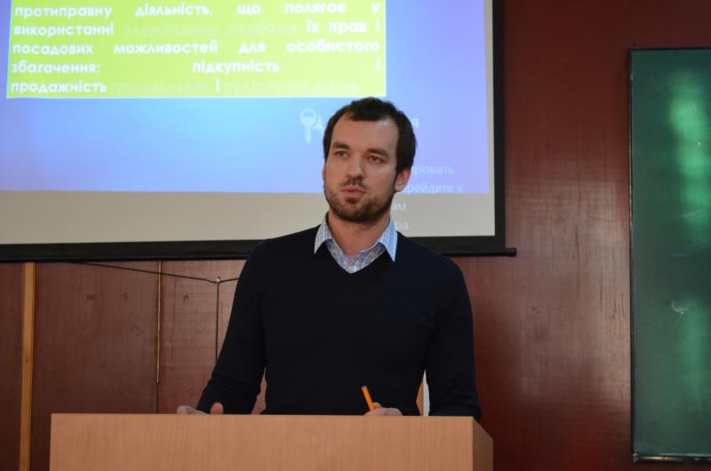8 грудня відбулась лекція з антикорупційного законодавства для працівників і студентів агробіологічного факультету, яку прочитав доцент кафедри міжнародного права та порівняльного правознавства Євгеній Шульга.
