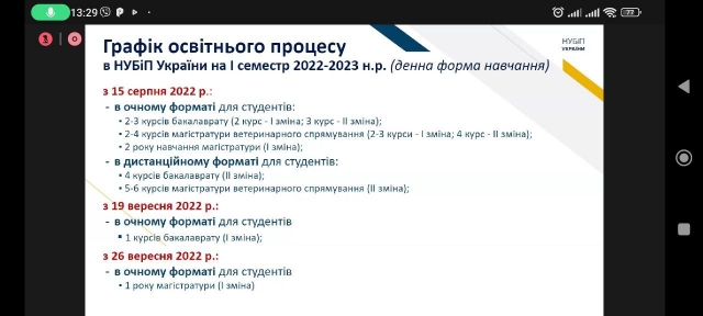 Про організацію навчального процесу в новому 2022-2023 навчальному році слухали інформацію Тонхи Оксани Леонідівни, яка висвітлила графік освітнього процесу. Згідно листа міністерства освіти і науки від 21.0402022 № 1/433422 студенти навчатимуся за змішаним форматом, зробила детальний аналіз виходу студентів на навчання різних курсів. Відмітила необхідність організації укриття за кількістю студентів в навчальних корпусах та гуртожитках. Зосередила увагу присутніх на великій відповідальності викладачів за здоров’я та життя студентів в умовах воєнного стану. Оксана Леонідівна зупинилася також на результатах літньої екзаменаційної сесії. Відмітила відвідування студентів та ліквідацію заборгованостей.