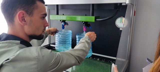 Співпраця з виробничими компаніями та ради роботодавців факультету, їх роль і значимість для додержання високого рівня навчального процесу дозволяє обладнувати лабораторії кафедри і факультету новими сучасними машинами і агрегатами, модельними діючими установками для повноцінного проведення практичної підготовки. Студенти спеціальності захисту рослин в спеціалізованій лабораторії компанії «АМАZONE» на модельному діючому макеті обприскування під керівництвом професора кафедри Теслюка В.В. та старшого викладача Вечери О.М. навчаються практично підбирати різні типи розпилювачів, встановлювати параметри тиску обладнання. Візуально вивчають якість розпилювання рідини, одночасність і швидкість відсікання рідини залежно від регулювання відсічного клапана розпилювачів, тиску, та інших показників роботи обприскувача залежно від заданих параметрів.