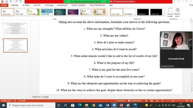 16 та 23 березня на 2 парі під час проведення лекційних занять для студентів 4 курсу факультету аграрного менеджменту з дисципліни «Мотиваційний менеджмент» було розглянуто тему «Моніторинг мотиваційного середовища». На 3 парі були проведені практичні заняття, на яких здобувачі вищої освіти проаналізували мотиваційне середовище українських та зарубіжних організацій, а також визначили вплив військового стану на мотиваційне середовище окремих організацій, які здійснюють свою діяльність в Україні.