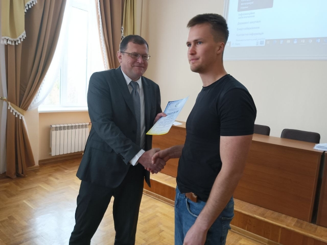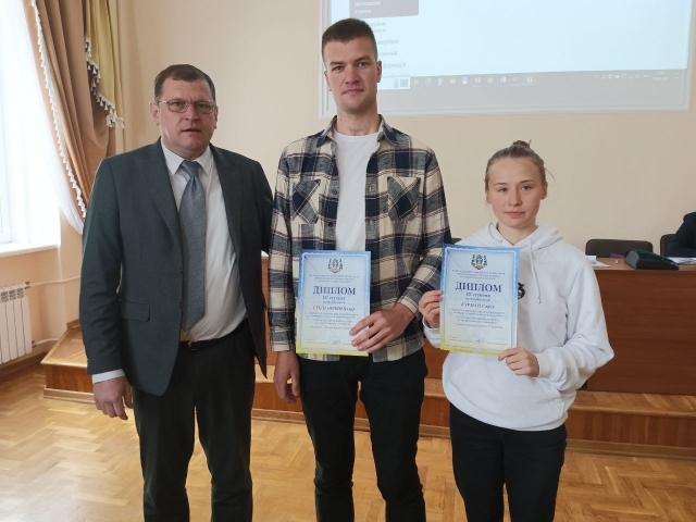 4. Дипломом ІІ ступеня нагороджений Микита Рябий, наук. керівник – к. с.-г. н., Віталій Жемойда. Тема наукової роботи - «Оцінка за холодостійкістю вихідного матеріалу кукурудзи з підвищеними показниками якості зерна» з галузі знань «Агрономія».