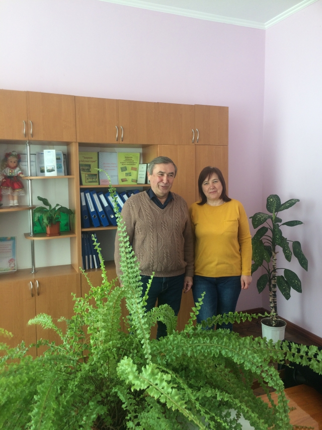 Заступниця директора Кирнасівського ліцею Паламарчук Катерина Олександрівна та професор Голуб Г.А. у класі для онлайн роботи ліцею.