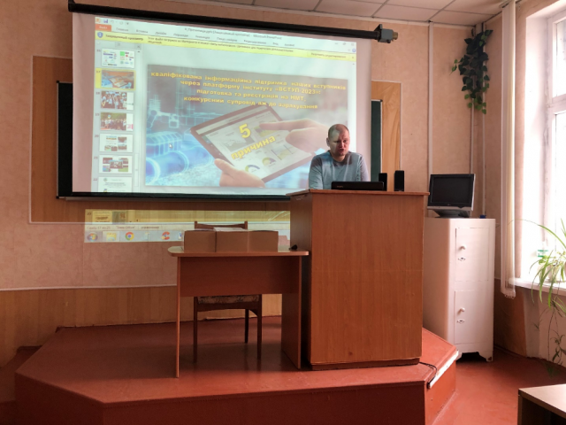 Досить розлогу інформацію про структуру, освітні програми спеціальності 141 – «Електроенергетика, електротехніка та електромеханіка» та умови проживаня у гуртожитку надав Владислав Власюк. Його розповідь супроводжувалась віртуальним туром навчальними лабораторіями інституту, презентаційними відеоматеріали студентських подій. Особливу увагу він приділив новелам умовам вступну на скорочений термін навчання на основі ОС «Молодший фаховий бакалавр» та ОС «Молодший спеціаліст».
