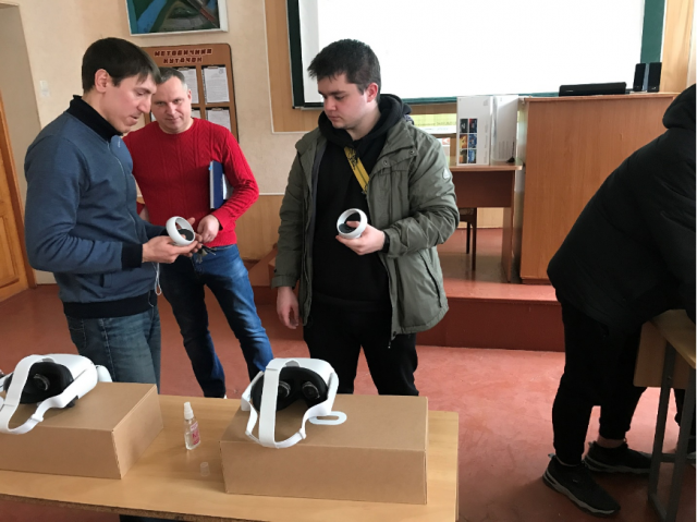 Особливою подією на зустрічі стало проведення лабораторної роботи з побудови схем електроживлення з використанням фотоелектричних станцій на віртуальному виробничому об'єкті з використанням VR тренажеру на базі Oculus Quest 2. Ця робота викликала значний інтерес як серед студентів, так і серед викладачів коледжу.