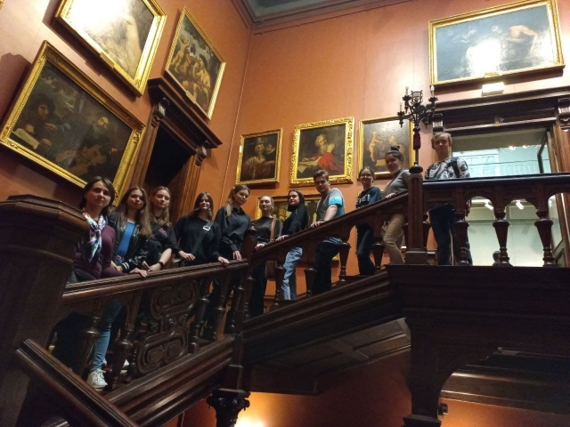 Першокурсники разом зі своїм наставником оглянули колекцію музею, яка включає оригінальні твори живопису європейських майстрів Пітера Пауля Рубенса, Джентіле Белліні, Хуана Сурбарана, Жака-Луї Давіда, Франсуа Буше та цінні скульптури прикладного мистецтва Європи.