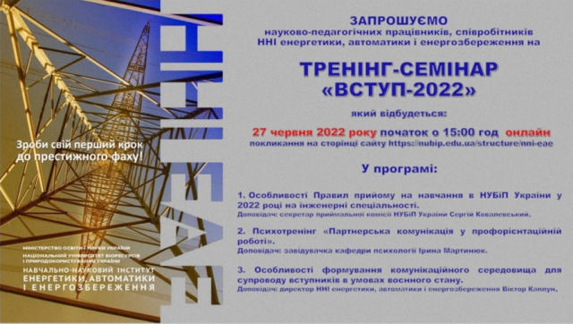 Саме з метою кращої підготовки підготовки викладачів до роботи зі вступниками ННІ енергетики, автоматики і енергозбереження організував і провів тренінг-семінар, у якому в якості спікерів взяли участь Сергій Ковалевський, відповідальний секретар приймальної комісії НУБіП України та Ірина Мартинюк, завідувачка кафедри психології нашого університету.