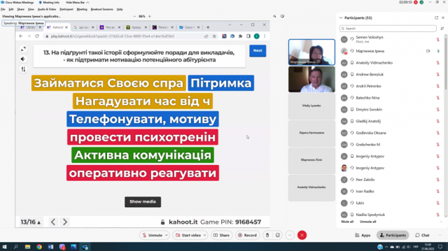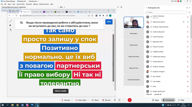 Під час тренінгу відбулась онлайн-гра учасників, яка дала можливість аналізувати, наскільки їхній стиль взаємодії з потенційними абітурієнтами близький до партнерського.